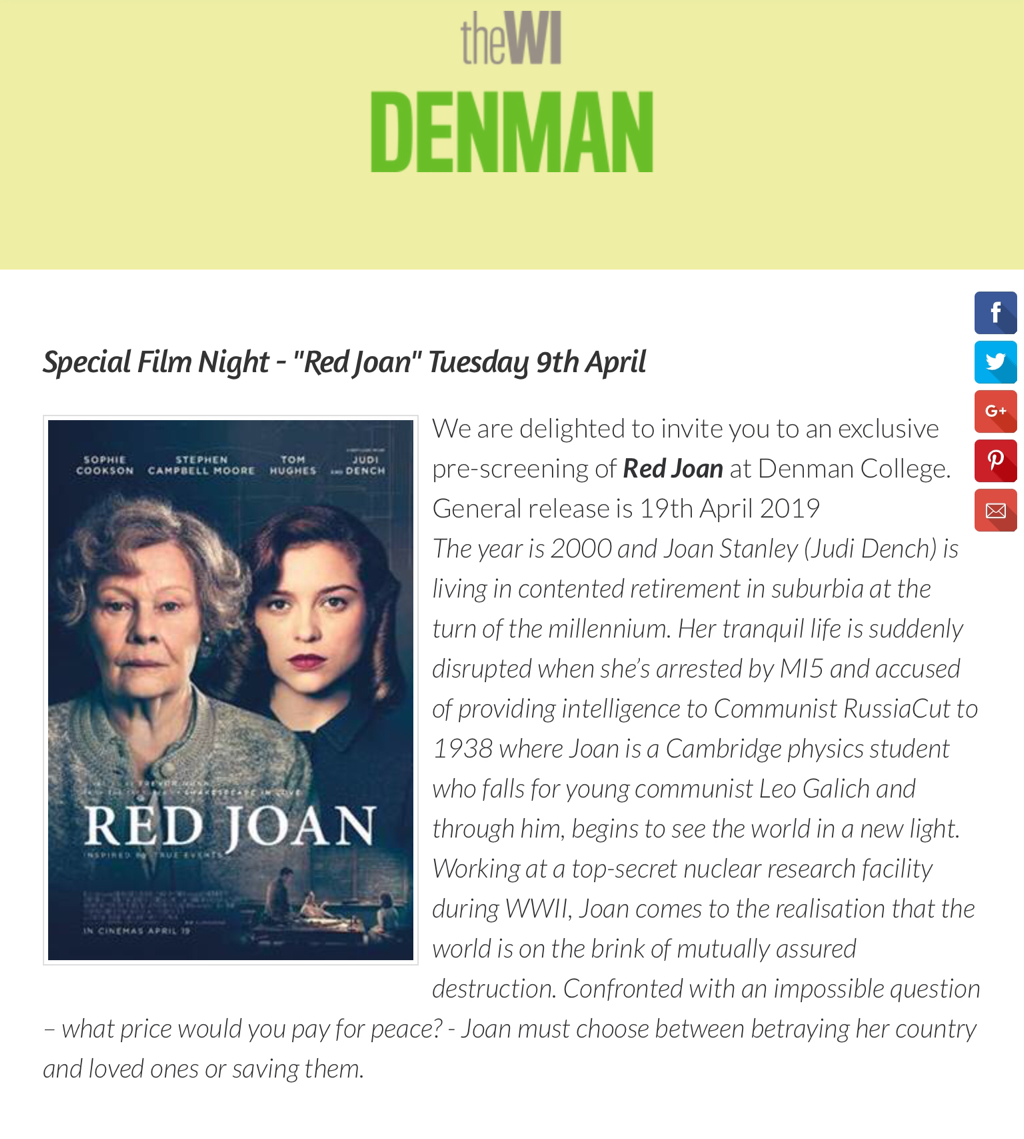 7 of us popped over to Denman for a film preview of Red Joan. A fabulous film, shouldn’t be missed, out in a cinema near you on Friday April 19th 2019.