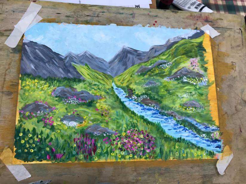 Diane and Lesley were lucky enough to win a bursary for Denman college. They decided that they would go together and the chose to do an acrylic painting, a course ran by Jonathan Newey. Jonathan is is an award-winning artist with over 20 years of experience in teaching drawing and painting. He specialises in watercolour, acrylic and coloured pencil drawing.