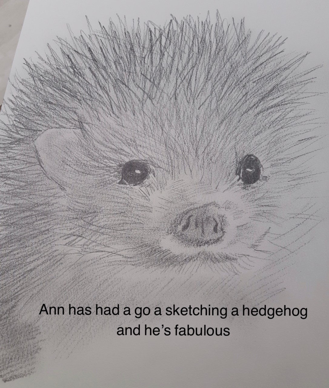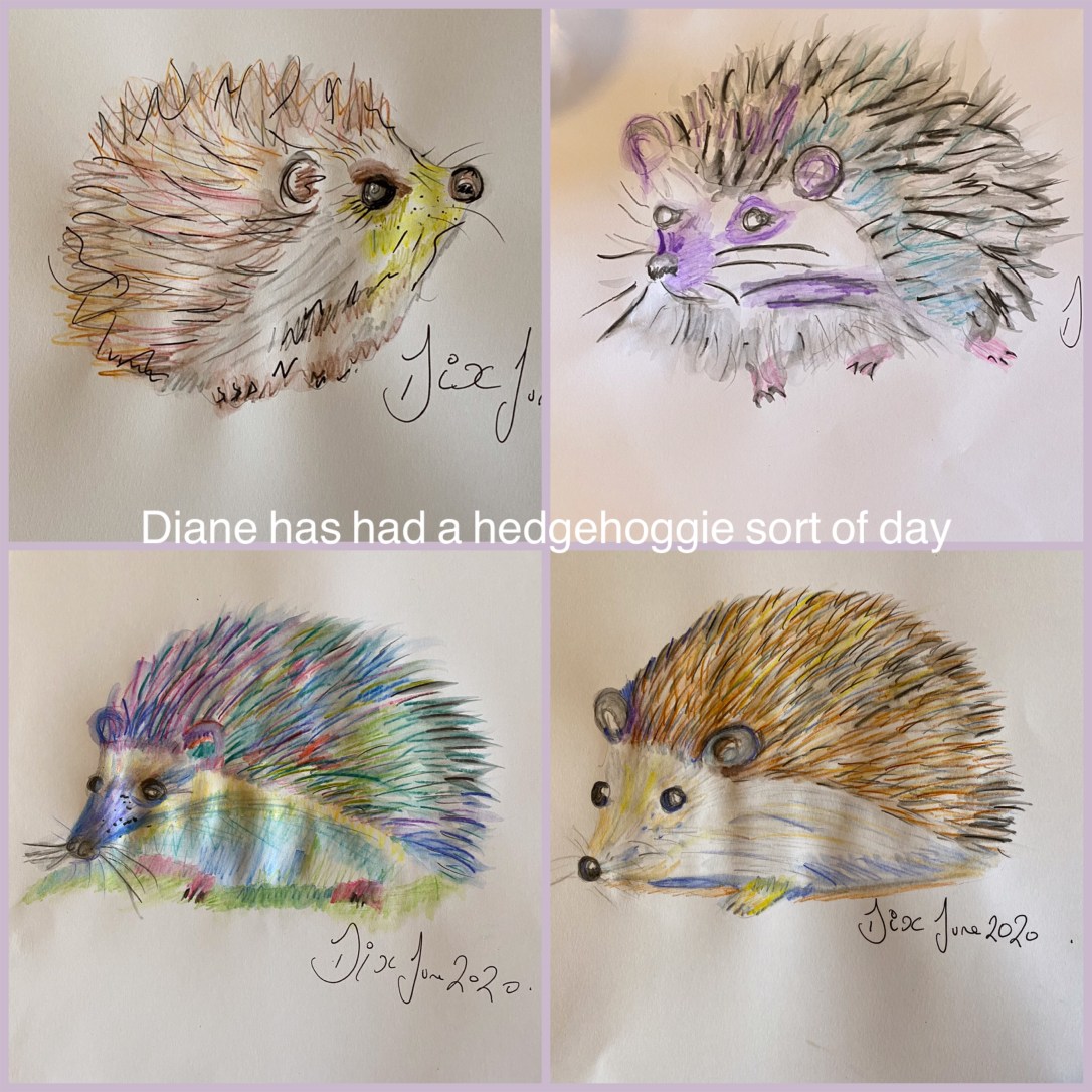 Lesley was a physicist and worked at Harwell for many years. She would say she loved homemaking and also liked painting, she did lots of hedgehog pictures quite recently and I am pleased to have a photo of one she did for Liz. It seems very poignant that it was only on Thursday that hedgehogs in the form of Rita’s folded hedgehog and Ann’s bright blue hedgehogs arrived on the website. If you are trying to place Lesley she was the lady who stood up at a WI meeting to explain how we could help the hedgehog by allowing them to pass freely through interlinking gardens.