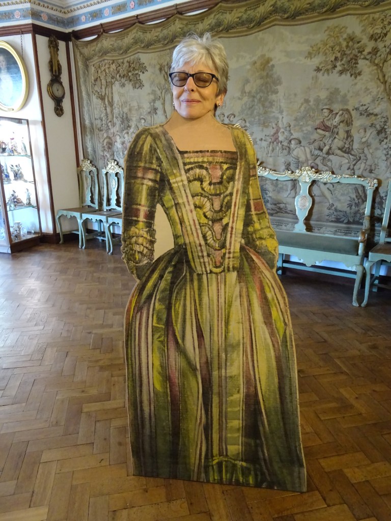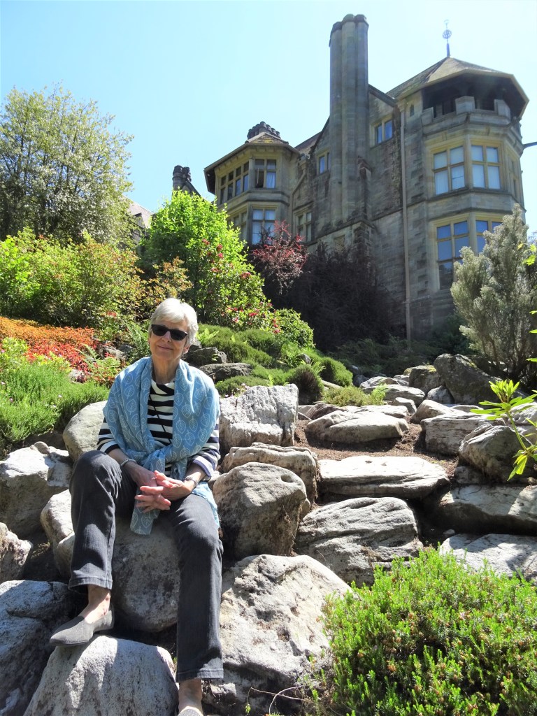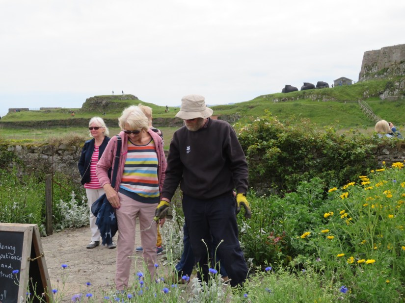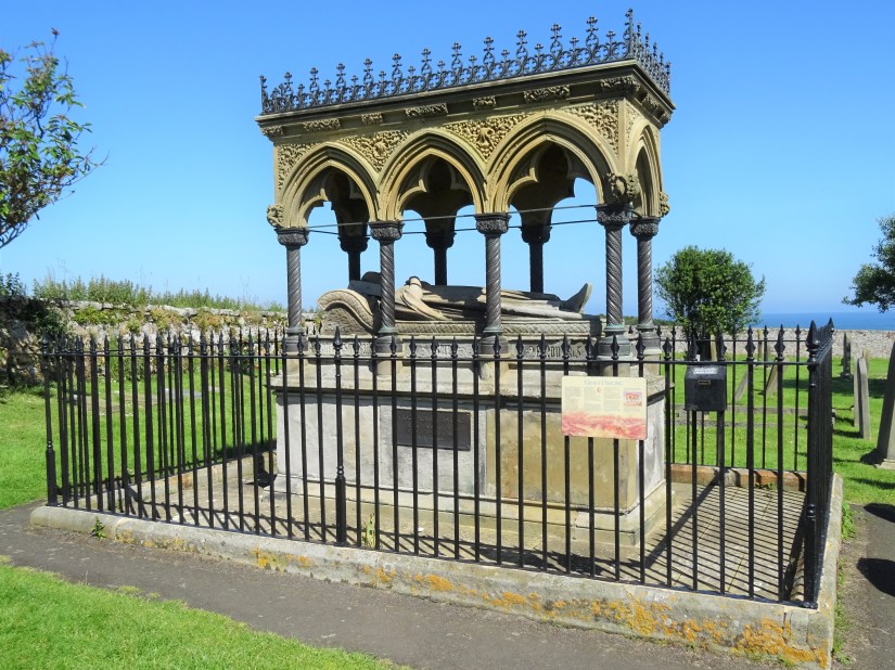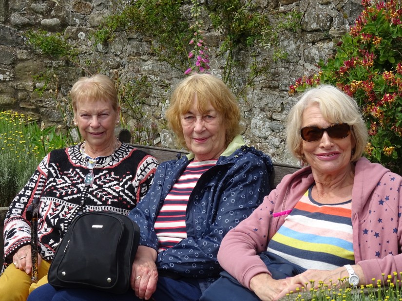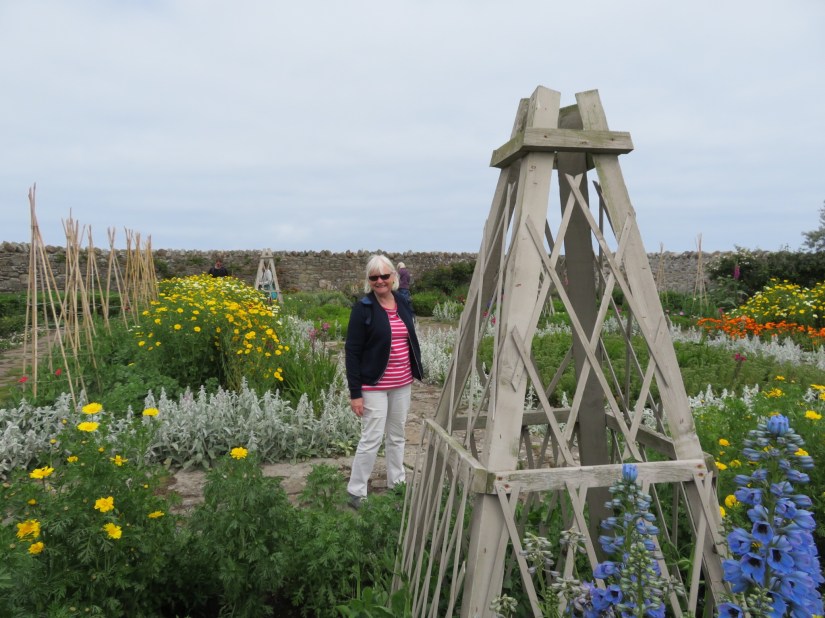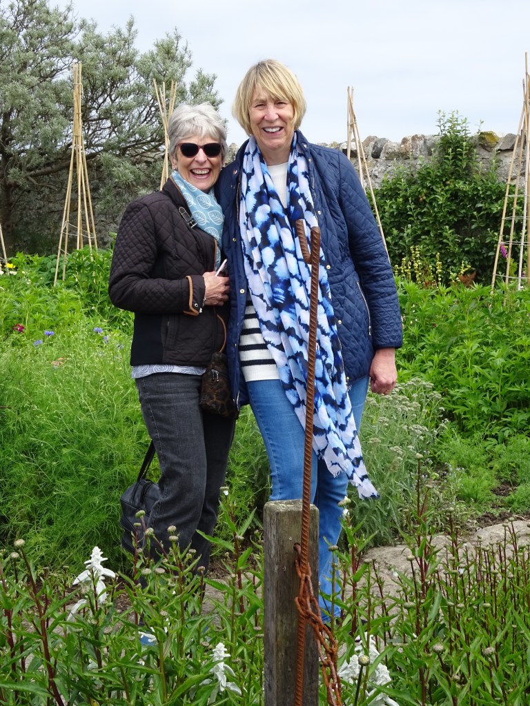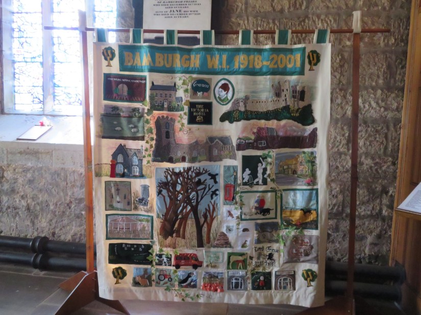 There was a beautiful wall hanging in Bamburgh church made by Bamburgh WI and Daphne is sitting on a bench outside the church donated by the WI.