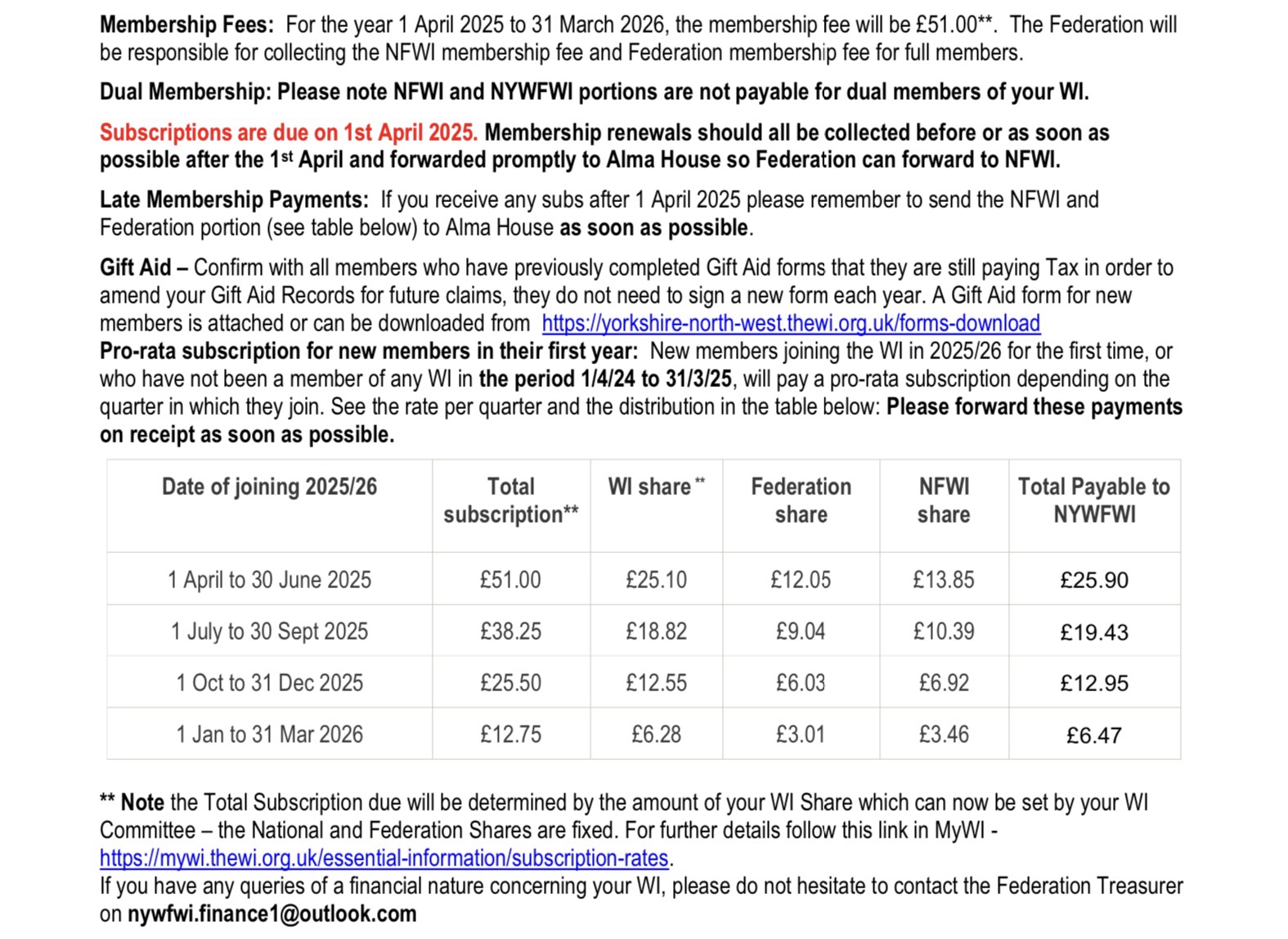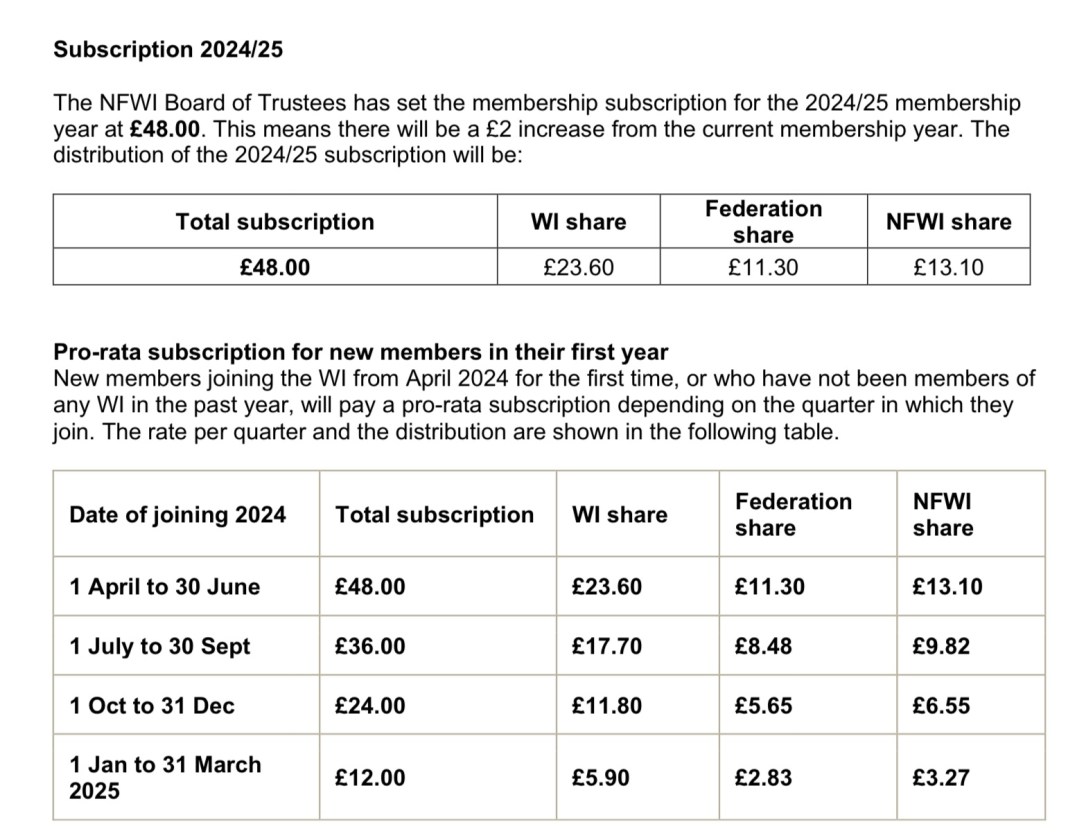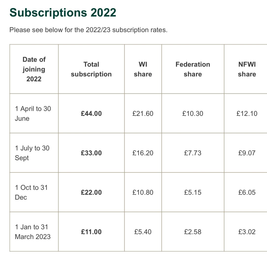 Wantage Wi have reduced this years annual fee by £5 so this years subs will be £46 and £20.60p for duel membership.