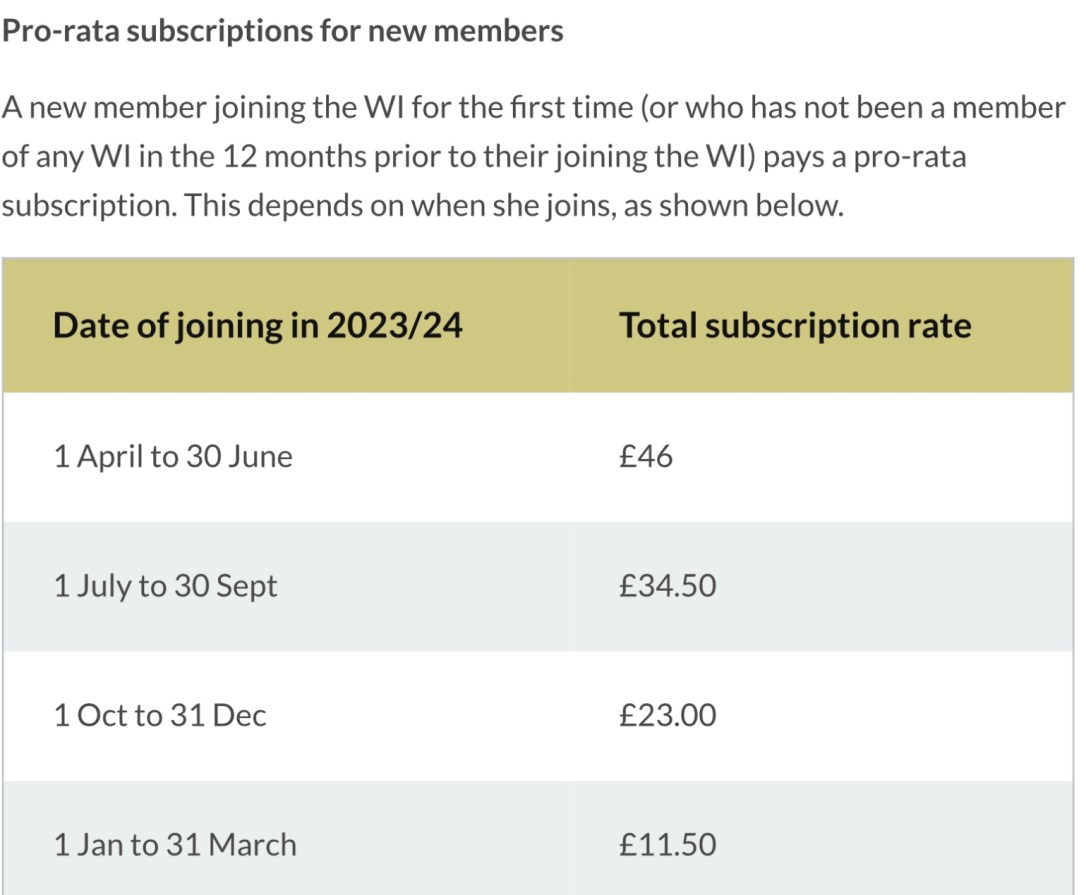 Dual members will pay £21.10 to their second WI. There is no pro rata rate for dual members.