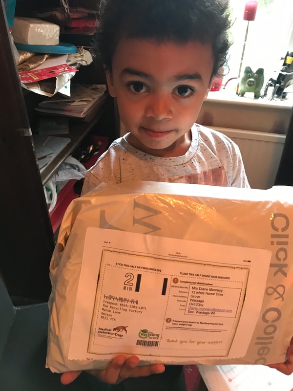 We collect all used stamps and your empty ink cartridges. These are recycled by Medical Detection Dogs.