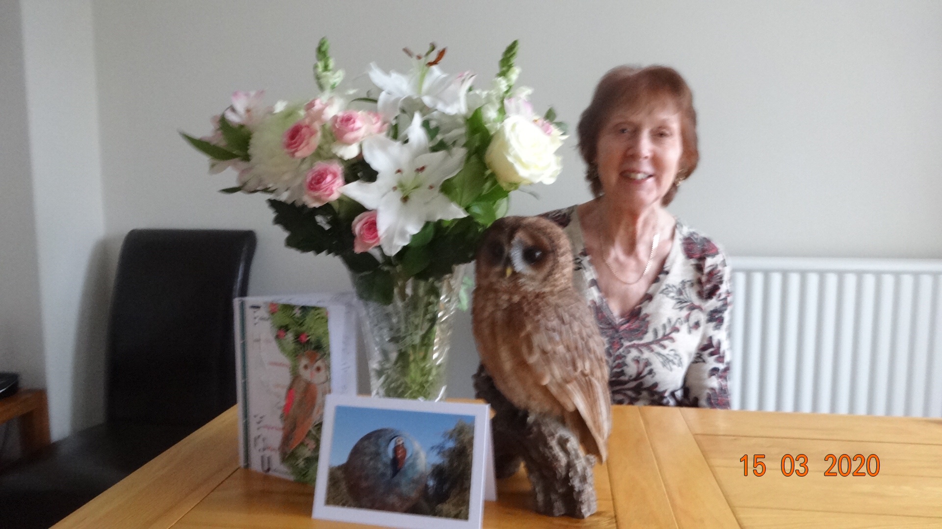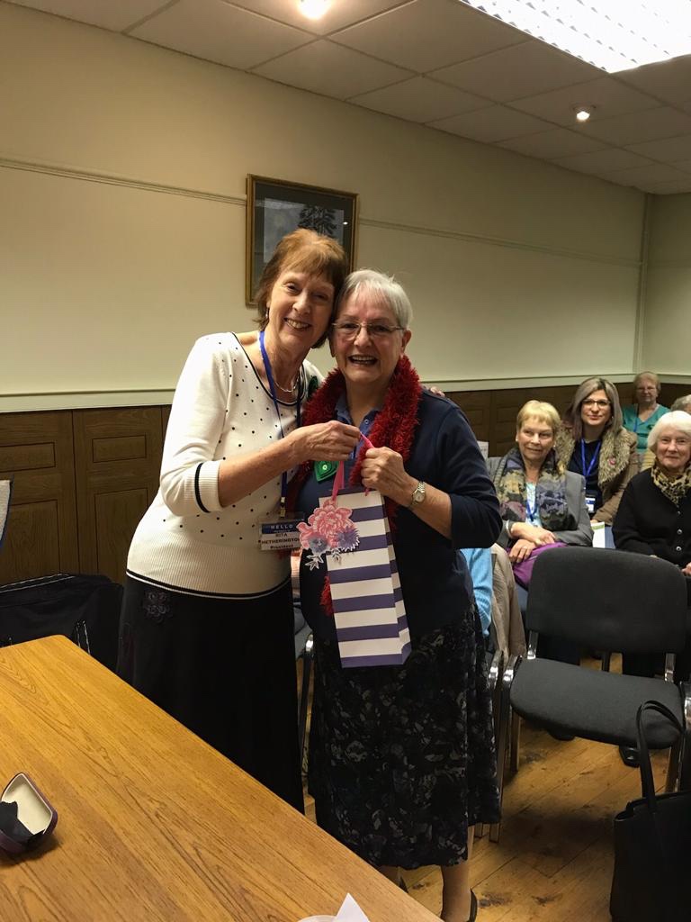 Thank you all so much for my lovely presents and kind messages. The flowers were beautiful and my owl is now happily settled enjoying the sun in my back garden. I will get to John Lewis eventually and find something to buy to keep as a memento of my time as President of Wantage WI. The meeting was really great and I thoroughly enjoyed it despite feeling rather emotional. Photo attached.