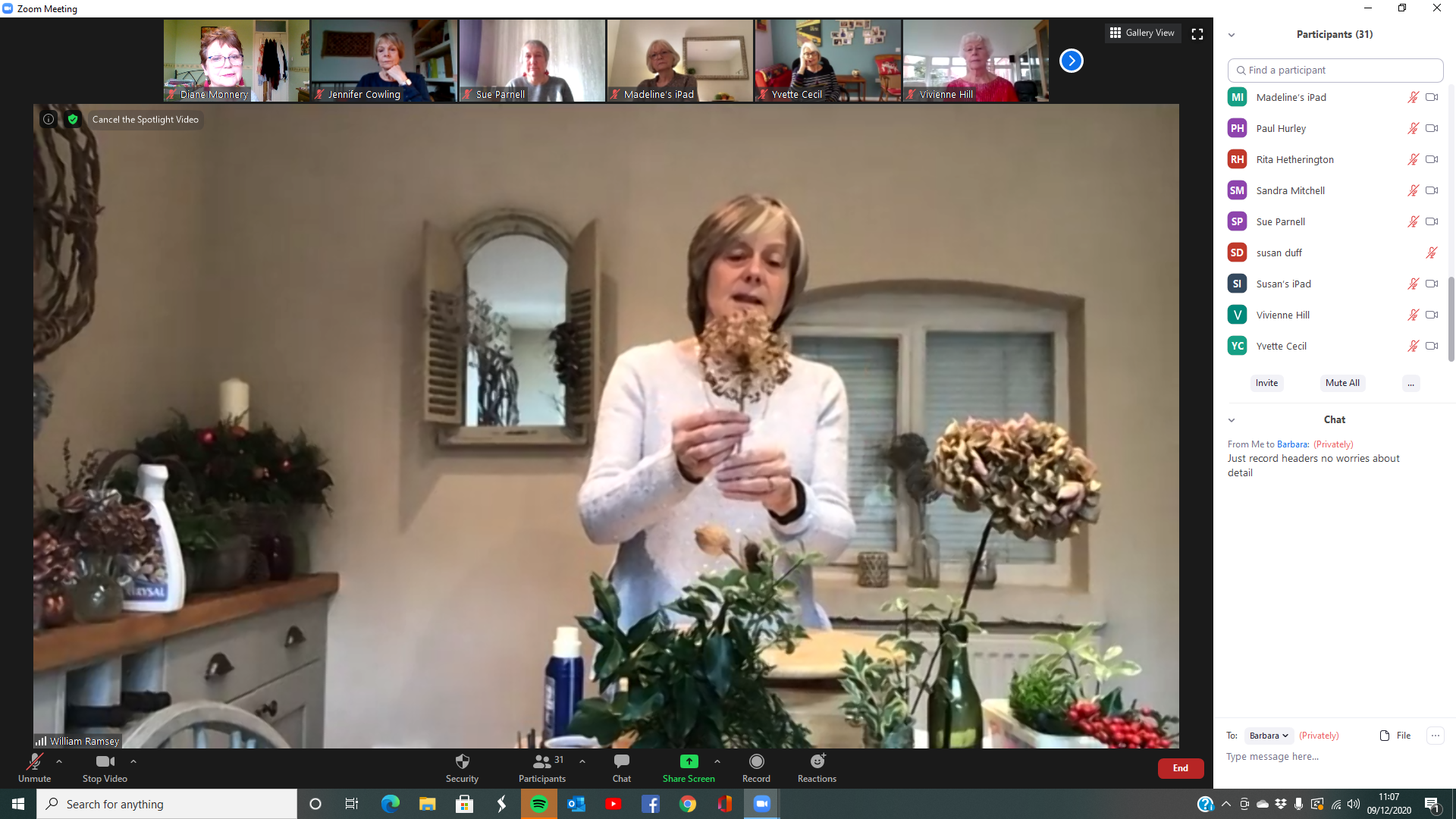 Christine Ramsey taking in to the Christmas season with her fabulous Christmas demonstration on Zoom. Christine showed us how to make 3 Christmas floral decorations.