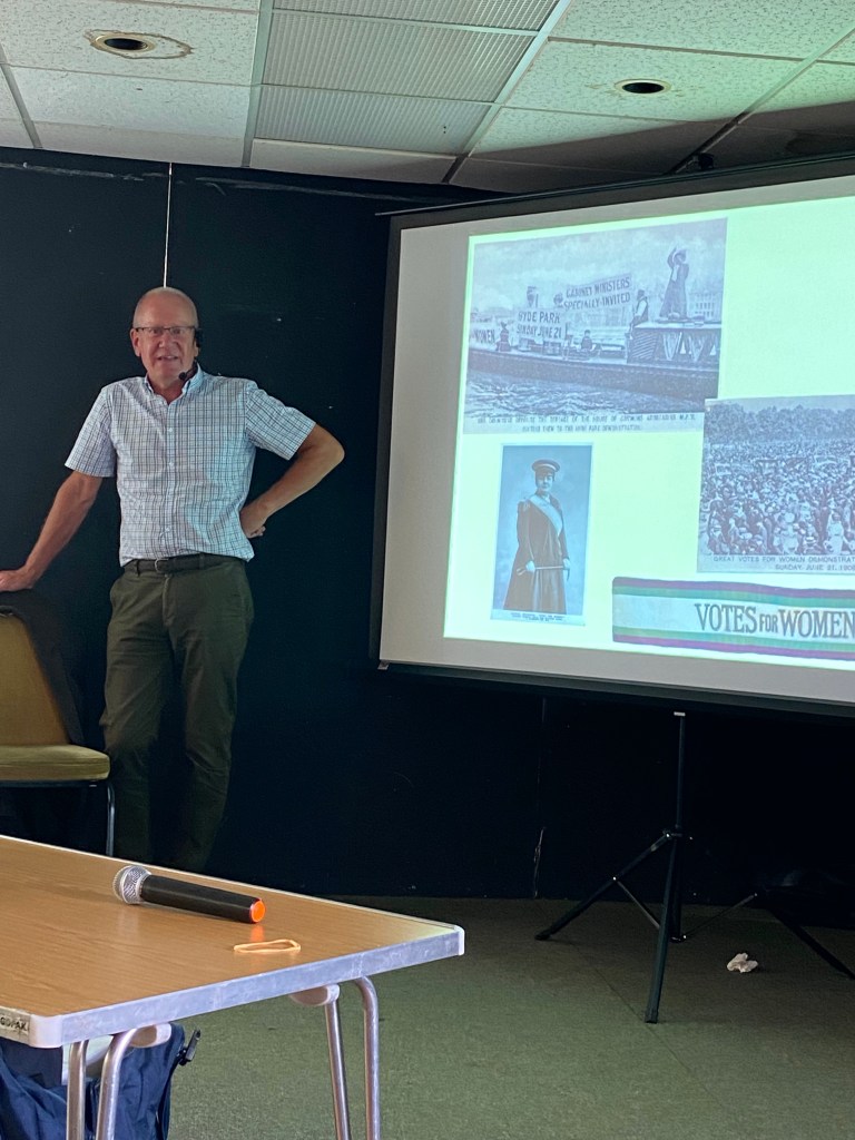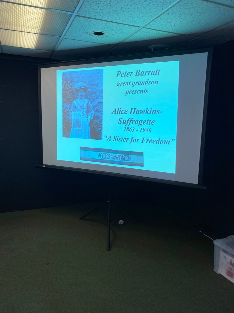 Peter Barrett give an extremely enthusiastic talk on his great grandmother, Alice Hawkins. Alice was a suffragette who campaigned for Women’s rights over a hundred years ago. We have much to be grateful for. https://www.alicetalks.co.uk/