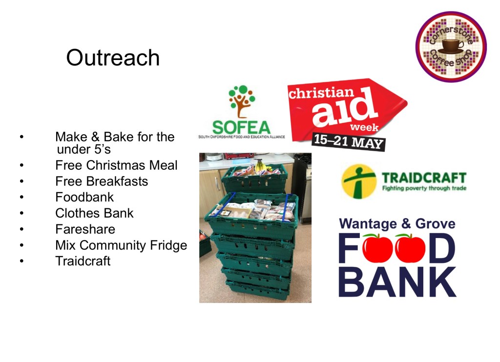 Sarah Shrewing, Coffee & Bookshop Manager, Ex Radiographer, Wife of Mr Shewy, Mum, Baking and Knitting enthusiast, Comedy lover and Christian came to talk to us about the Cornerstone cafe in Grove. Really interesting.