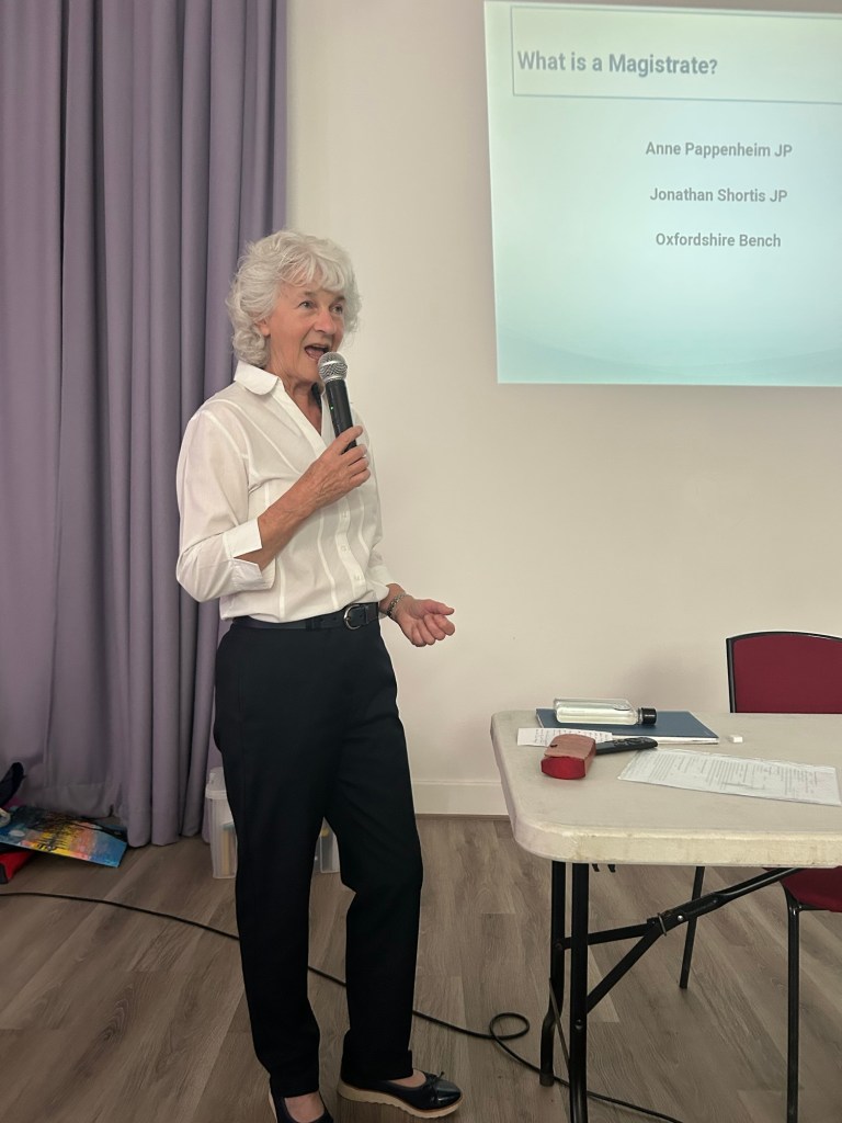 Our June meeting saw Anne Pappenheim and her colleague talk to us about being a magistrate. It was most informative and a quiz was a great way to get information across.